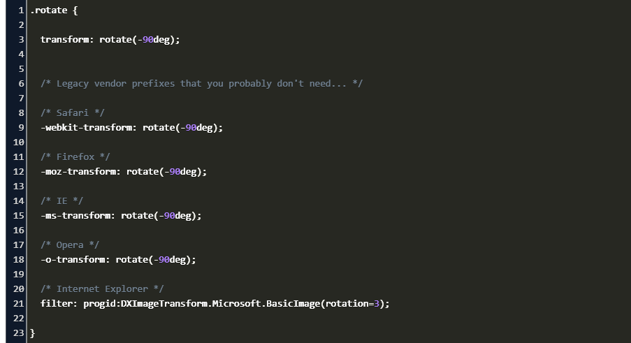 Just to let you know you, can rotate any element in the Html, So on to how to do it first in the CSS target, the Element you want to Rotate, Next put in the transform property, and put Rotate like this.